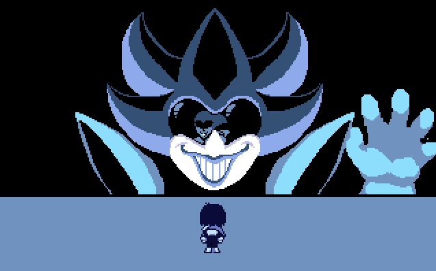僕も、バグの話。ポップアップという敵の「こうどう」コマンドに、「クリック」っていうのがあるんですけど、選ぶと、この敵のコピーがどんどん増えていって、ゲームがクラッシュした“みたいな”画面になって、敵を見逃せるようになるんですよね。ところがある日、僕はポップアップのスプライトがエンドレスに増殖して、本当にゲームがクラッシュしちゃうバグを生み出してしまいました…