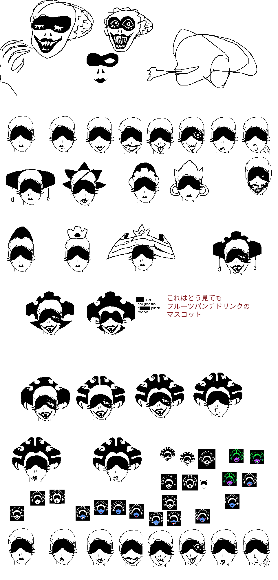 これはただのスケッチで、デザインと呼べるものではないので、採用した案は1つもありません。「コンセントマン」の絵は、すごく気に入ってます(笑)