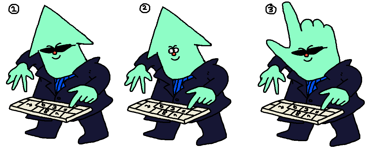 キーボードを適当にタイプしまくったり、マウスをブンブン振り回したりして“ハッキング”する。他にも、どんどん笑える方法になっていく、とか?