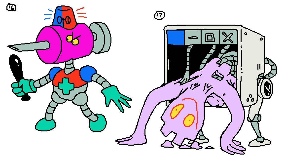 10:「Painter(ペインター)」。 『星のカービィ64』のアデレーヌみたいな感じだけど、雑な「MSペイント」っぽいエフェクトを使う(特にエアブラシとか)。