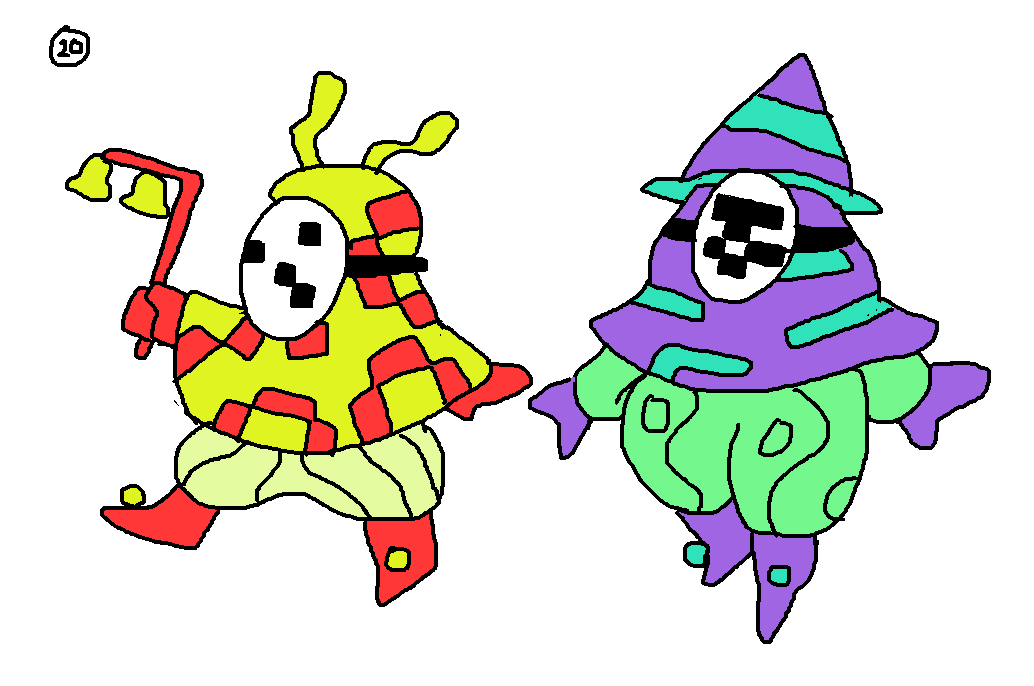 20:「Masked Dancer(仮面のダンサー)」たち。お祭りに参加。色によって、動きのパターンやダンスのジャンルが違う。すごくざっくりのコンセプトです。