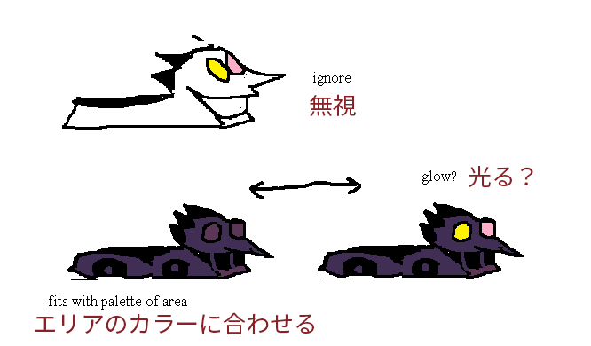 闇の世界版バードリーの初期スプライトも、Chessが作ってくれました。
