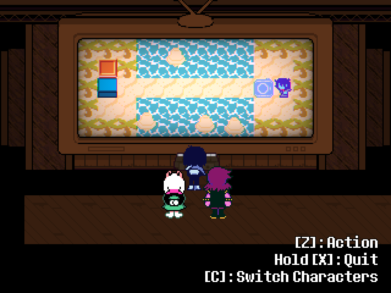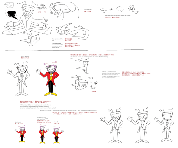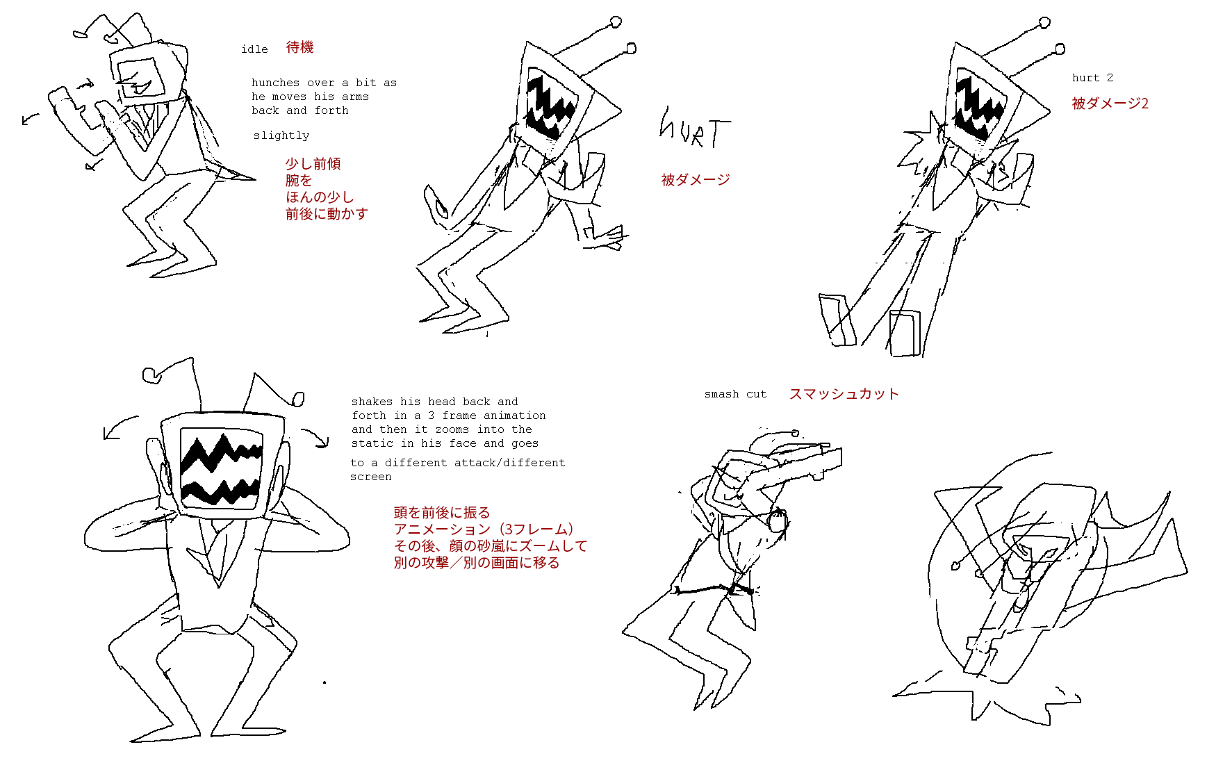 Chapter 3は…他のチャプターと同じく、元のアイデアは2016年ごろに考えはじめました。当初のコンセプトは、「通常のチャプターとは毛色の違う、小休止のようなチャプターにして、『マリオパーティ』みたいなヘンテコなボードゲームにしよう!メタトンみたいなテレビのキャラクターを登場させよう!」というものでした。『ゴースト トリック』をプレイした記憶がまだ鮮明に残っていて、これに採用されていた3Dの表現がとても好きだったので、同じような魅力を持った3Dのキャラクターを登場させたいと思いました。当時僕はちょうどKinectを買ったばかりで、モーションキャプチャをいろいろ試していました。そのときに、「MikuMikuDance」というソフトと組み合わせたら、『王様物語』の「TVランチ」みたいな3Dの踊るヘンテコテレビキャラを作れるかもしれない、なんてことを考えていました。